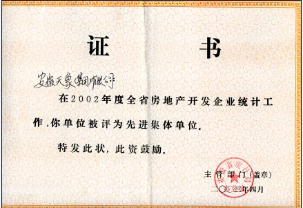 2003年安徽省房地產(chǎn)先進(jìn)集體證書